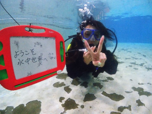 こんにちはー! 東京・吉祥寺三鷹エリアのダイビングショップ トラウムスクーバのサトシです(^^♪ 今日はプールでの体験ダイビング(^^♪ とっっっても怖がりでビビりだけどダイビングがしてみたいとのこと!! おっしゃーー。