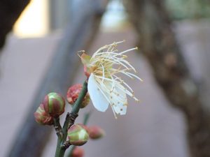 こんにちはー! トラウムスクーバのサトシです。 今日は庭のお手入れ。 草むしりや枝の伐採をしていたら、、、 ウメの花が咲いてたー(*^▽^*) 日中は暖かいから咲いたのかな♪ も