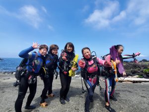 こんにちはー。 東京・吉祥寺三鷹エリアのダイビングショップ トラウムスクーバのサトシです。 大島ツアー2日目。 天気は良くて暖かいのですが、うねりが大きく秋の浜のみになってしまっています。 今