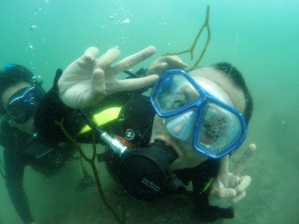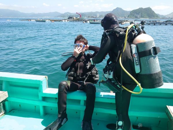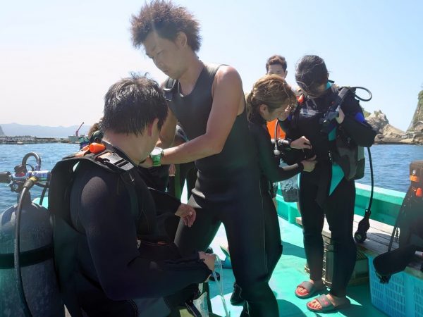 ダイビングの説明をして、準備もバッチリ。