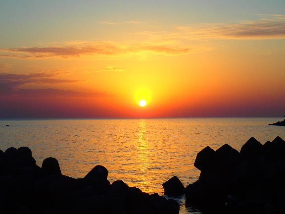 水平線に沈む夕日です。
