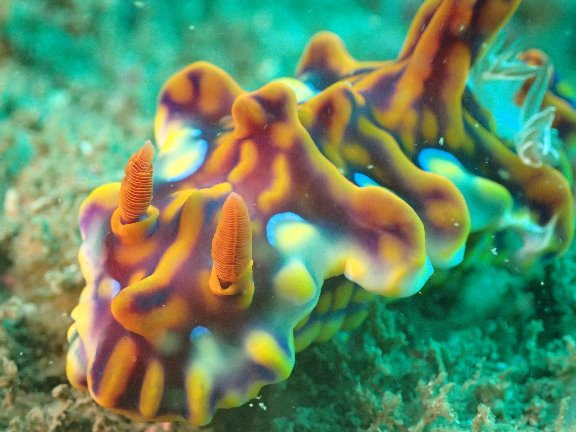 毒々しい色のミアミラウミウシ。大人と幼体です(^^♪