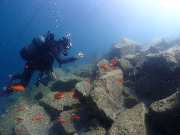 浅瀬にはキンギョハナダイが乱舞していて、とっても綺麗です!!