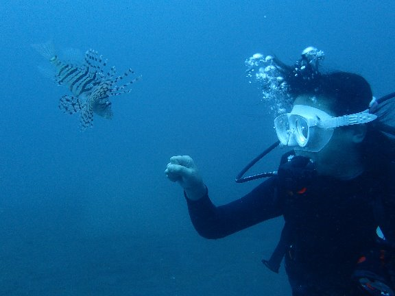 ミノカサゴと戦うHにゃん。笑