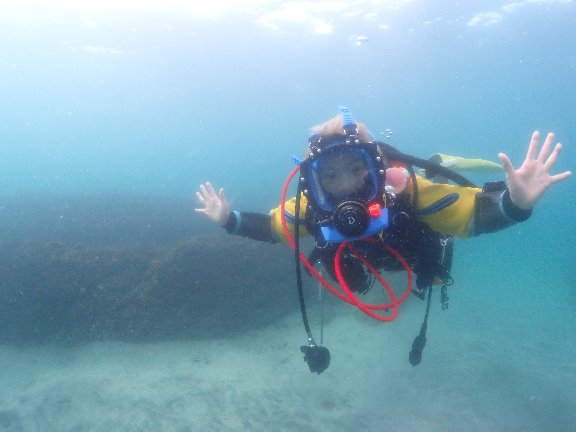 フルフェイスマスクを付けてダイビング。